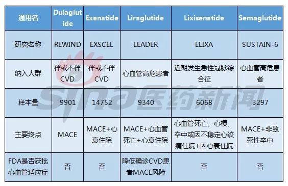 表1. 能改善主要不良心血管事件(MACE)的GLP-1激动剂