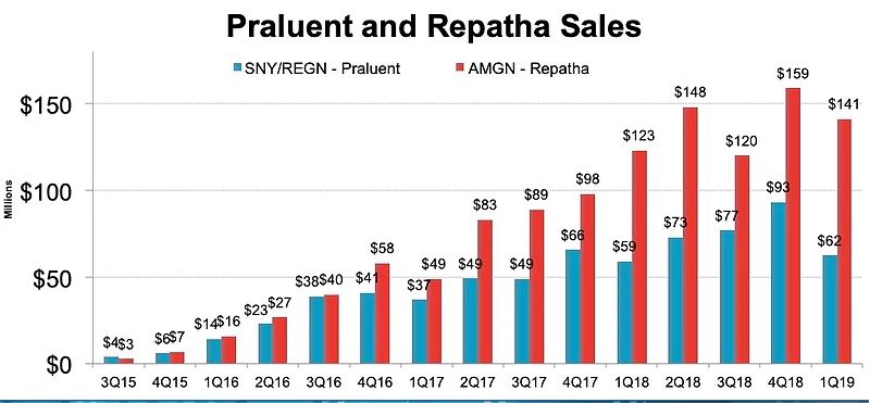 2015年先后上市了两个前蛋白转化酶枯草杆菌蛋白酶/ kexin 9型抑制剂(PCSK9i),Sanofi/ Regeneron的Praluent(alirocumab)和Amgen的Repatha(evolocumab),作用是通过与LDL受体的结合,从而增加肝细胞表面上的可用LDL受体数量以清除LDL,从而降低血液中的LDL-C水平,被FDA批准用于治疗杂合子家族性高胆固醇血症患者。这被誉为进入在他汀后降低高胆固醇血症的新纪元,定价约为每年14,000美元,高定价和高度未满足的治疗市场,当时上市之时被分析师预测为继立普妥之后的降血脂类药物的重磅炸弹。