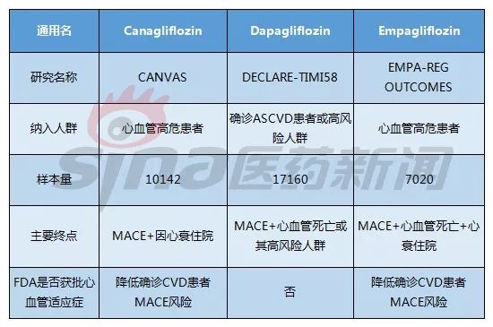 表2. 能改善主要不良心血管事件(MACE)的SGLT-2抑制剂