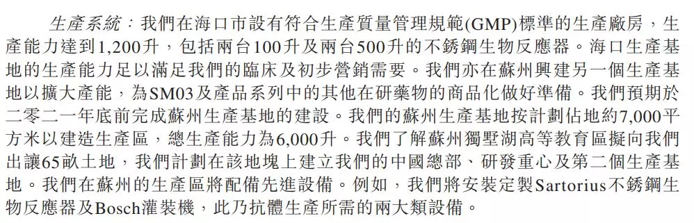 中国抗体是大中华区少数具有全面能力的生物制药公司之一。该公司明确表示不会依赖CMO进行生产,目前已在深圳、海口及苏州分别设立了研究中心及生产基地。