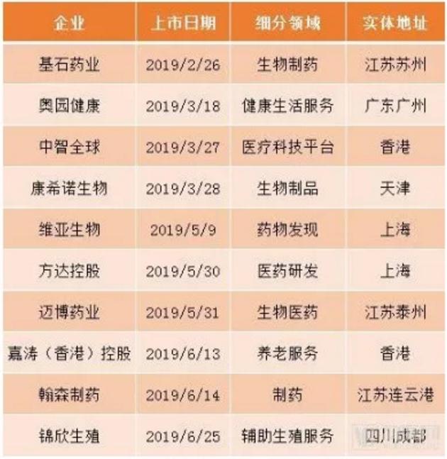 动脉网记者统计发现,2019年上半年共有10家医疗健康领域企业在香港上市。这些企业主要位于长三角地区,有3家来自江苏,2家来自上海。