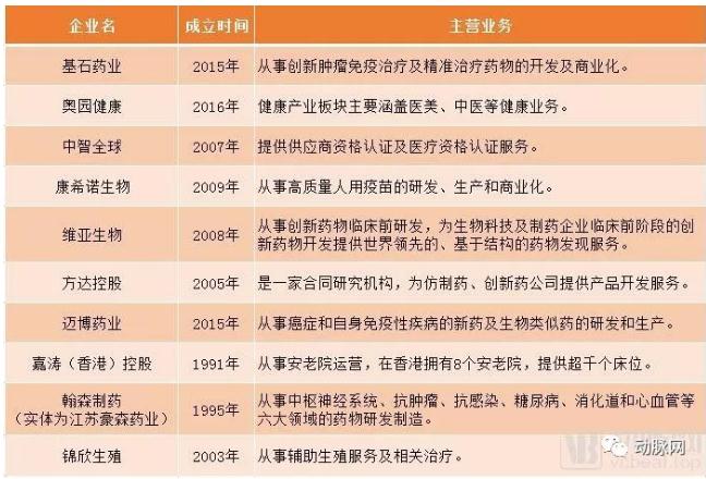 从业务分布来看,这10家企业涉及药物发现、生物制药、辅助生殖服务、养老服务等领域,其中医药研发生产企业就占了6家。各家业务侧重分别如下: