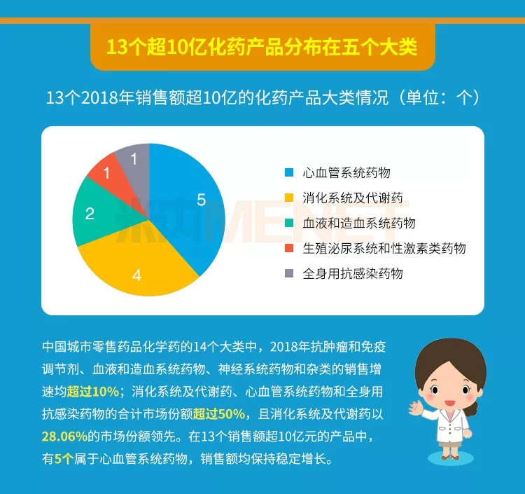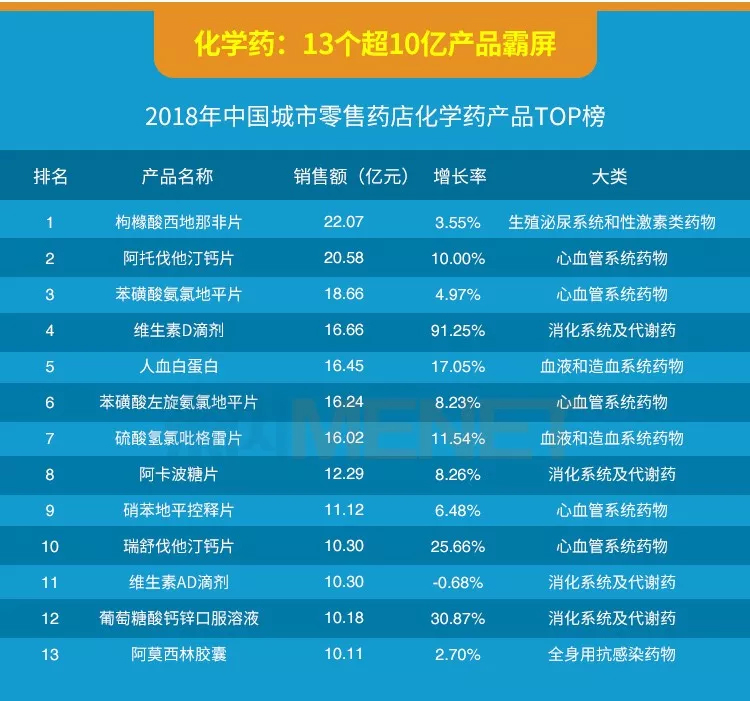 数据说明:米内网《中国城市零售药店化学药与中成药终端竞争格局》中,所指“城市”的统计范围是:298个地市及以上城市,亦即中国所有地级及以上城市的实体药店(不含县乡村实体药店);上述销售额以产品在终端的平均零售价计算。