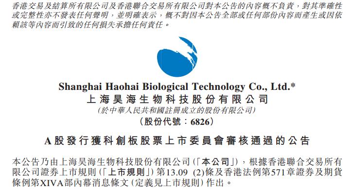 近日,上海昊海生物科技股份有限公司(下称“昊海生物”)发布公告称,上海证券交易所科创板股票上市委员会2019年第15次审议会议上市通过了公司的科创板首发申请。