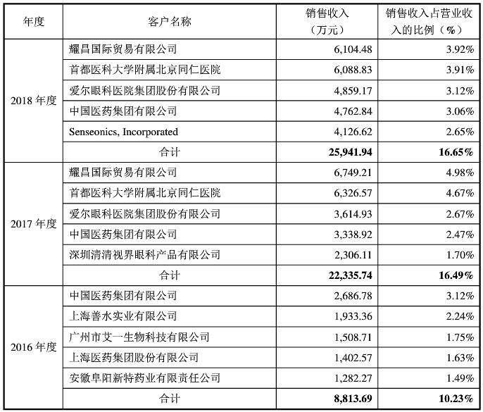 不断的收购使得昊海生物2017年已经占据中国人工晶状体30%的市场份额,人工晶状体也已成为公司的主力产品,贡献约27%的营收。2018年昊海生物前五大客户中,除去中国医药集团,包括首都医科大学、爱尔眼科等均为人工晶状体产业链的相关采购。