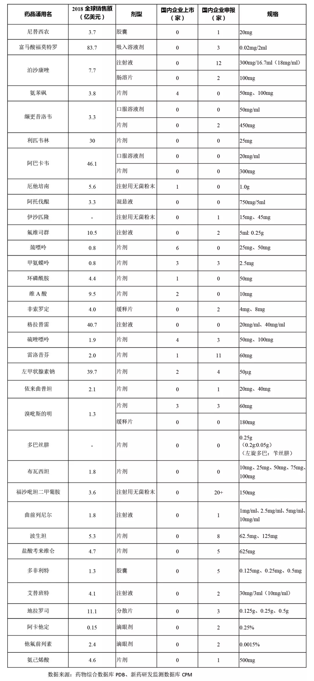 在这份清单中,囊括了多种抗癌药、罕见病药物以及此前曾出现短缺的药品等。34个鼓励仿制药品种及市场情况如下: