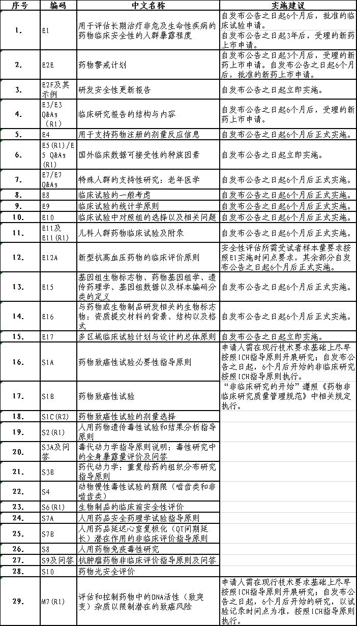 为做好ICH指导原则转化实施工作,我中心在充分征求工业界、相关临床研究机构以及非临床研究机构意见的基础上研究制订了29个ICH三级指导原则的实施建议,现公开征求意见。