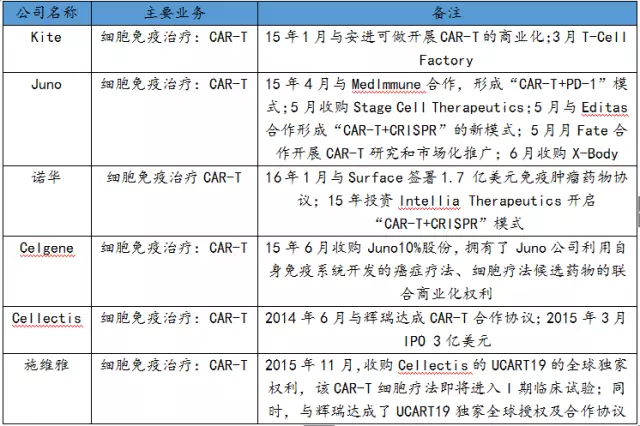 细胞治疗作为很有可能完全治愈癌症的新方法,这几年是收到“各路豪杰”的追捧。国外大的药企纷纷开始“联姻富国之路”;而国内的上市药企也不甘示弱,甚至是本不属于该领域的上市公司都在争先的挤入该领域来分羹,这类公司有姚记扑克,钢丝上的细胞——新日恒力等。