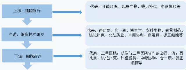 免疫细胞治疗行业的产业链包括上游的细胞存储、中游的细胞技术研发以及下游的细胞诊疗。