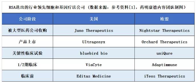 行业领先的细胞和基因疗法公司(数据来源:参考资料[1],药明康德内容团队制图)