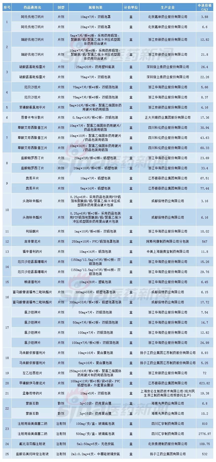 附:4+7试点中选药品供应清单
