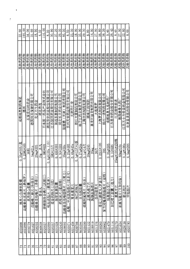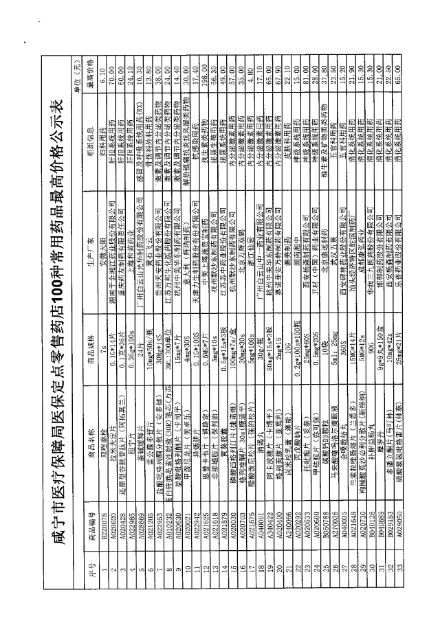 附 咸宁城区医保定点零售药店100种常用药品价格自降清单