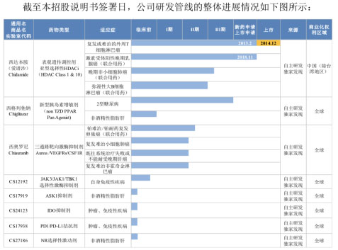 公开资料显示,深圳微芯生物于2001年成立,是一家旨在为患者提供可承受的、临床急需的原创新分子实体药物,具备完整的从药物作用靶点发现与确证、先导分子的发现与评价道新药临床开发、产业化、学术推广及销售能力的国家级高新技术企业,专注于肿瘤、代谢疾病和免疫性疾病三大治疗领域的原创新药研发,微芯生物目前共有8种产品,其中西达本胺已经成功上市,西格列他钠和西奥罗尼有望在未来几年陆续上市,其余5种也正在开展临床前研究。