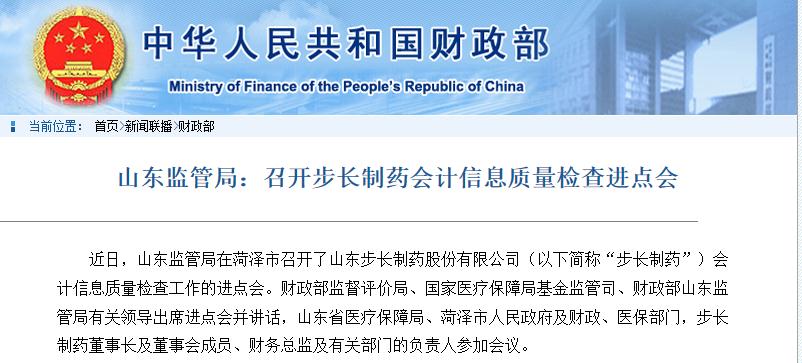 近日,财政部在官网发布消息称,山东监管局在菏泽市召开了山东步长制药股份有限公司(以下简称“步长制药”)会计信息质量检查工作的进点会。