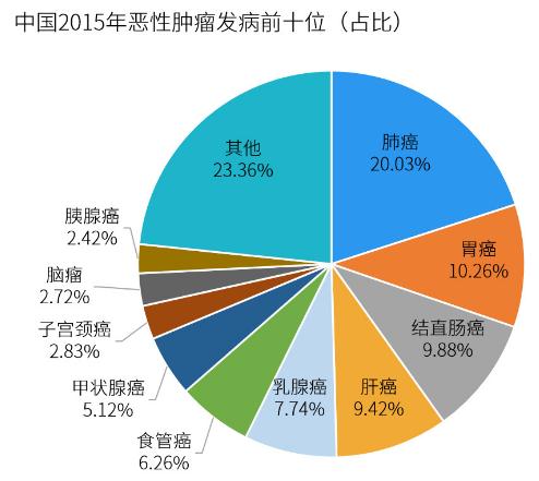 首先,肝癌是具有中国(东亚)特色的癌症。根据中国癌症中心(NCC)的数据显示,2015 年中国癌症发病约 392.9 万例,全年死亡约 233.8 万人。其中,肺癌是发病率最高的肿瘤,也是癌症死因之首;胃癌、结直肠癌和肝癌是紧随其后的我国发病率和死亡率较高的常见肿瘤。
