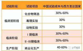 1. 我国医药研发成本较发达国家具有非常大的竞争优势
