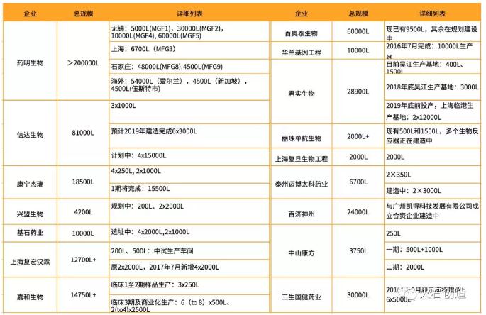 特别是是生物制剂类的研发制药公司,截至2018年12月底,据不完全统计已有47家抗药或基因治疗类制药企业提供CRO/CMO服务。这些企业凭借自身在高技术壁垒行业的丰富经验,将满足公司自身需求外的人力物力转向业界内其它中小初创型公司,在充分缓解了自身因前期固定设备的巨大投入而产生的经济压力的同时,也促进了医药行业及医药外包行业的发展。