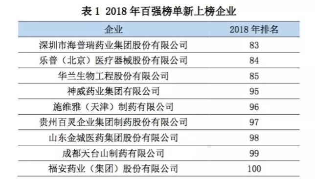 同时,名次下降企业23家,排名未变企业12家,并新增海普瑞、乐普医疗、华兰生物、贵州百灵等9家上榜企业。
