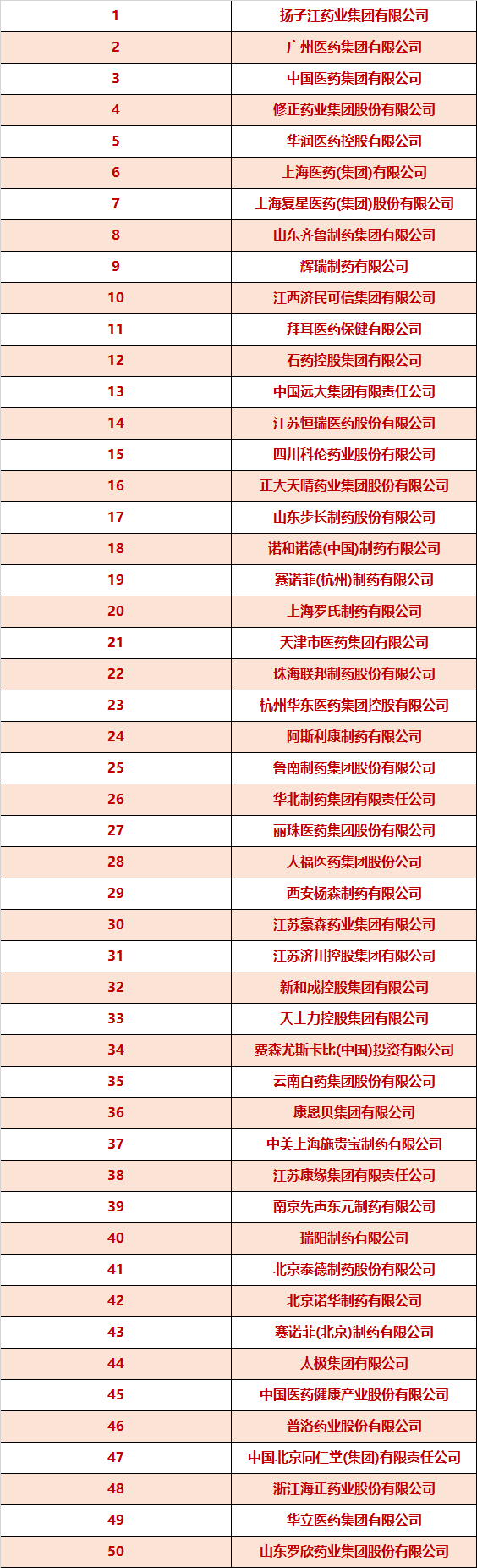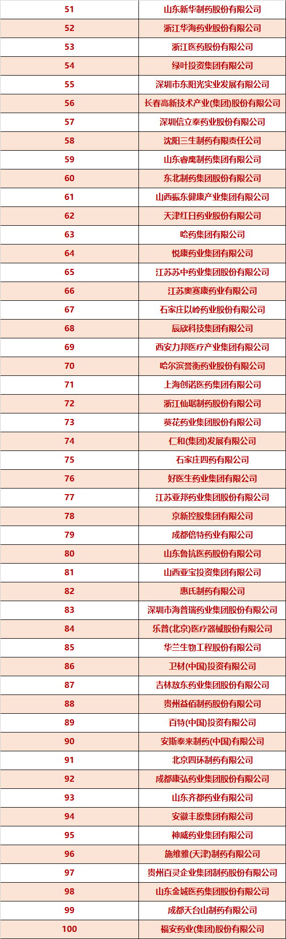 附2018年中国医药工业百强企业榜单