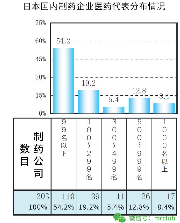 上图可以看到,在日本拥有1千名以上医药代表的药企有17家,介于 500~999 名医药代表的药企有26家。