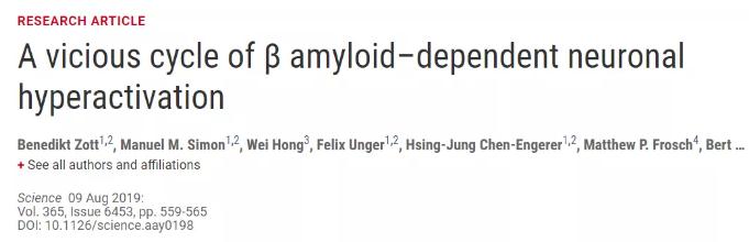 近年来,越来越多的证据表明,神经元的异常活跃与致病密切相关。有团队对患前驱AD的人(显示出AD的早期症状)进行功能性磁共振成像发现,聚集了大量Aβ的海马体和新皮质中神经元过度活跃(这表明,神经元过度活跃发生在AD病程非常早期的阶段——远在患者失忆之前),而一些小鼠研究显示,一种可溶形式的Aβ在神经元的这种异常兴奋发挥了关键作用。