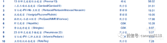 下图:2018年全球Top10疫苗品种销售额情况