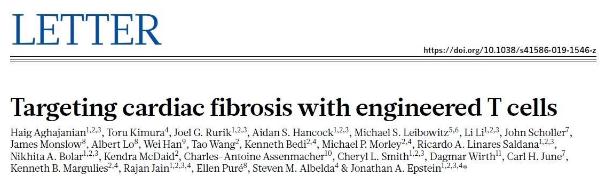 [1] Haig Aghajanian et al., (2019) Targeting cardiac fibrosis with engineered T cells. Nature. DOI: 10.1038/s41586-019-1546-z