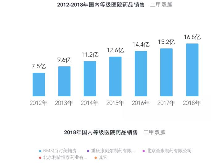 二甲双胍虽是“老”品种,但一线降糖地位不可撼动,医院市场销售额稳步增长,份额主要集中在原研厂家。