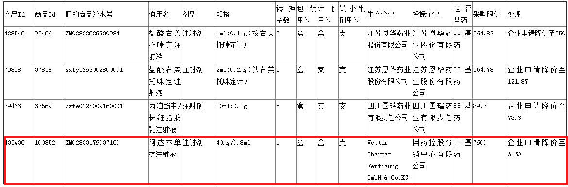 近日,云南省政府采购和出让中心发布云南省关于企业申请降价的公示,公示显示,投标企业国药控股分销中心有限公司的阿达木单抗注射液(40mg/0.8ml 商品名:修美乐)采购价由7600/元降至3160/元,降幅达58%。