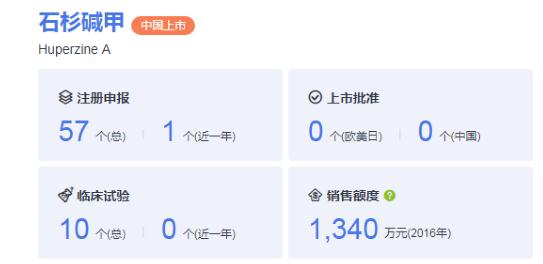 据统计数据显示,石杉碱甲2016年销售额度达到了1340万元,企业剂型分布:原料药6家生产企业、片剂9家、胶囊3家、注射剂1家、粉剂1家。