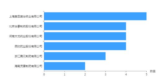 2019年1月-9月全国中标企业中上海复旦复华药业中标数目达5个省份,居榜单之首: