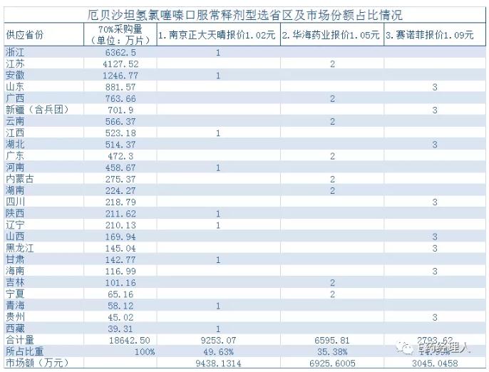 仅厄贝沙坦氢氯噻嗪片一个品种可见,整个带量3家中标并不是简单的三分天下的局面,报价仅是取得中标席位的一部分,选择省区也直接影响市场格局,结合来看才能够看清此轮带量采购25个品种近45家企业中标后真正的市场前景。