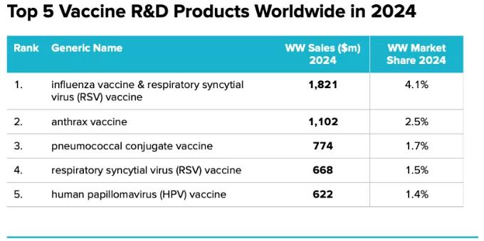 因此,RSV在新疫苗研发领域一直是皇冠上的明珠,医药市场专业咨询机构EvaluatePharma曾于2018年发布市场调研报告《World Preview 2018,Outlook to 2024》,预测了最具商业潜力的5款在研疫苗,其中两款都是RSV疫苗。如果成功上市,其在2024年的销售额合计将达到25亿美元。