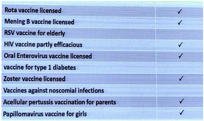 图2. 世界卫生组织专家Stanley A. Plotkin教授关于疫苗研发进展预测(2007年)及实现结果(2017年)
