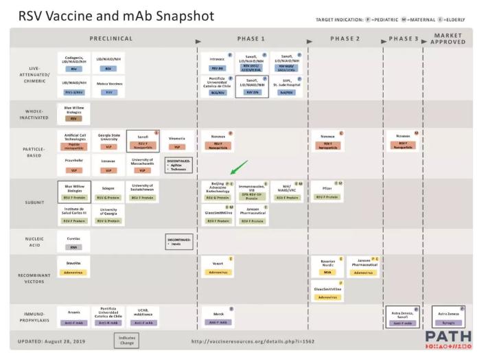 图3. 目前全球在研的RSV疫苗品种(来自PATH组织)