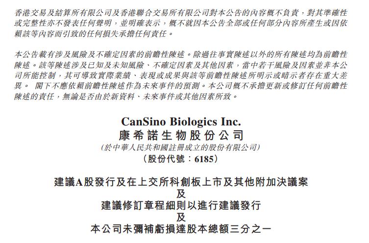 此次科创板上市计划尚需获得康希诺生物股东大会审议通过。有关A股发行的决议案自股东特别大会及类别股东大会审议通过之日起12个月内有效。