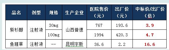 2006年,据山西省相关调研,发现大批药品的医院售价(中标价*1.15)明显高于出厂价,其重灾区在所谓的新药以及进口合资药。抽查的30种新特药中,医院售价与出厂价格最大价差为26倍,平均为7.6倍。(下列举)