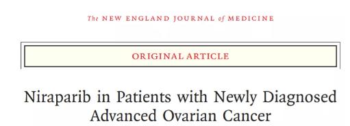 以上数据也在同一天发表在了顶级医学期刊NEJM杂志上[1]。论文作者指出,来自同源重组正常的患者群体的研究结果支持了一种假设,即,除了阻断DNA损伤修复,niraparib还具有可用于抗癌的其它不同机制。他们推测,PARP可能还参与调节了基因转录、核糖体生物发生和免疫激活。