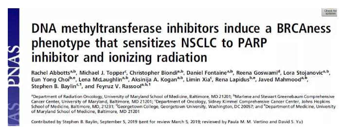 DNMT抑制剂5-azacytidine联合PARP抑制剂talazoparib在非小细胞肺癌模型中产生了协同细胞毒性(图片来源:PNAS)