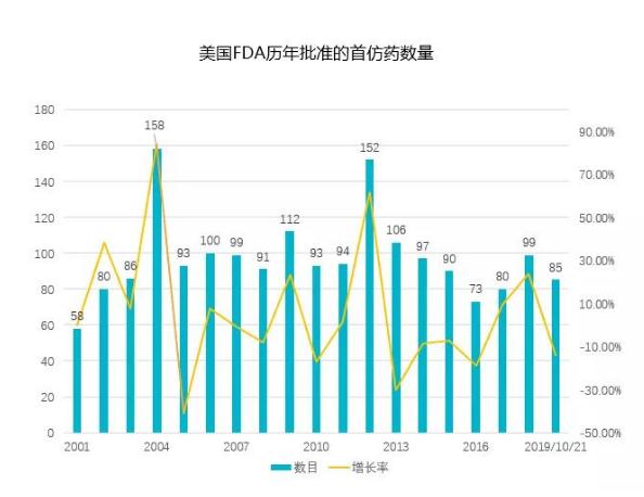 近日,美国 FDA 网站公布了 2019 年获批的 85 个首仿药,其中包括用于阿片类药物过量的急救药,以及用于治疗肺动脉高压(PAH)、乳腺癌、癫痫、抑郁症和感染性疾病的药物。