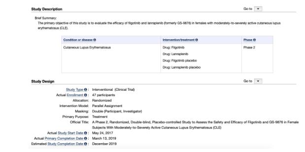 2017年,吉利德启动了两项研究(NCT03134222和NCT03100942),针对女性中重度红斑狼疮和干燥综合征,并计划在2019年下半年获得结果。近日,吉利德在其第三季度业绩电话会议上,高级副总裁John Sundy透露,尽管此前研究看到了“积极证据”,但最终两项试验均未达到主要终点。