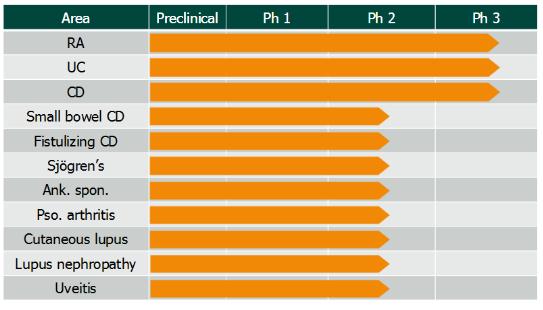 Filgotinib正在开展的临床试验及阶段(来自Galapagos NV公司官网)