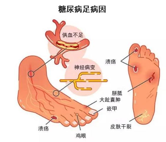 糖尿病足在糖尿病的各个阶段均可发病,既有糖尿病和其他并发症的内科疾病表现,又有足部病变的外科情况,一旦发病,病情进展较快。