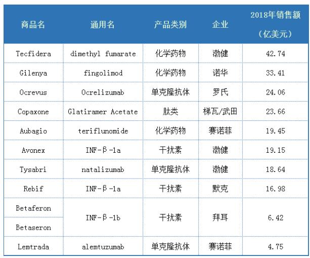 具体到制药商,渤健(Biogen)、辉瑞、罗氏、默克、诺华、赛诺菲、梯瓦等药企瓜分了全球市场头部企业。