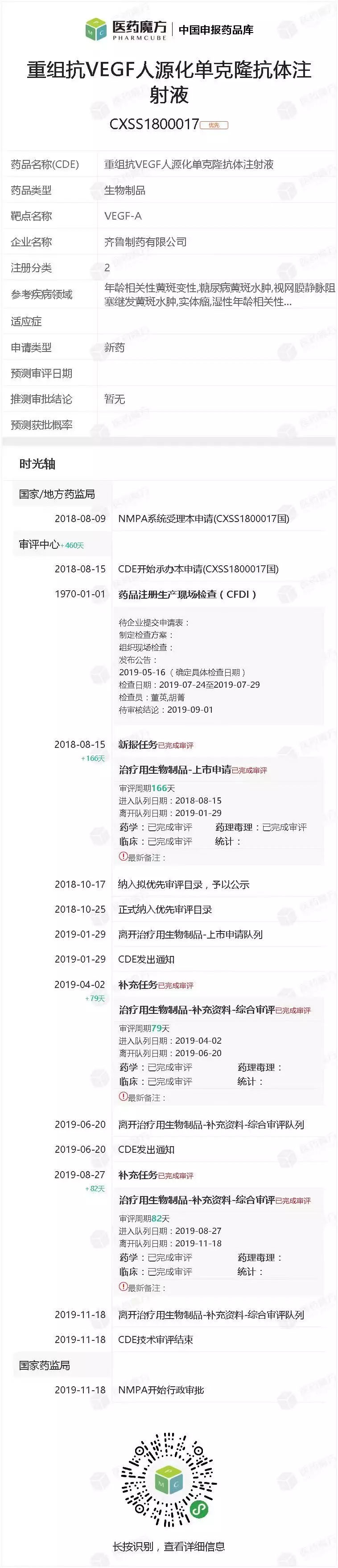 11月20日,齐鲁制药贝伐珠单抗上市申请(CXSS1800017)进入“在审批”阶段,意味着该药很有希望在几天后正式获批,成为首个获批的Avastin生物类似药。