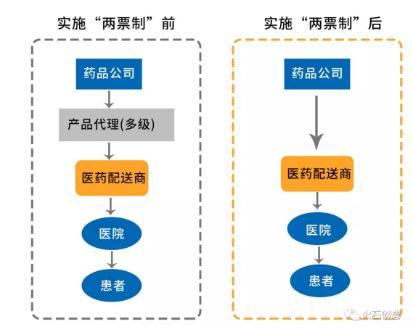 在推行“两票制”前,部分全国性流通企业对终端网络的渗透能力并不强,产品由全国总代理层层分发,形成多级代理关系。在实施“两票制”之后,由药品公司对接医药流通企业,砍掉了中间多余的分销商环节,医药供应链链条将缩短。