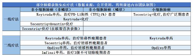 而罗氏的重磅PD-L1抑制剂Tecentriq则在今年3月成为20多年来首款获批治疗广泛期SCLC的一线新疗法。在今年9月,欧盟批准Tecentriq(atezolizumab),与化疗(卡铂和白蛋白紫杉醇)联用,一线治疗转移性非鳞状非小细胞肺癌(NSCLC)患者,这些患者不携带EGFR基因突变或ALK变异。而且,Tecentriq作为一线单药疗法,在治疗PD-L1高表达NSCLC患者的3期临床试验中,表现也优于化疗。