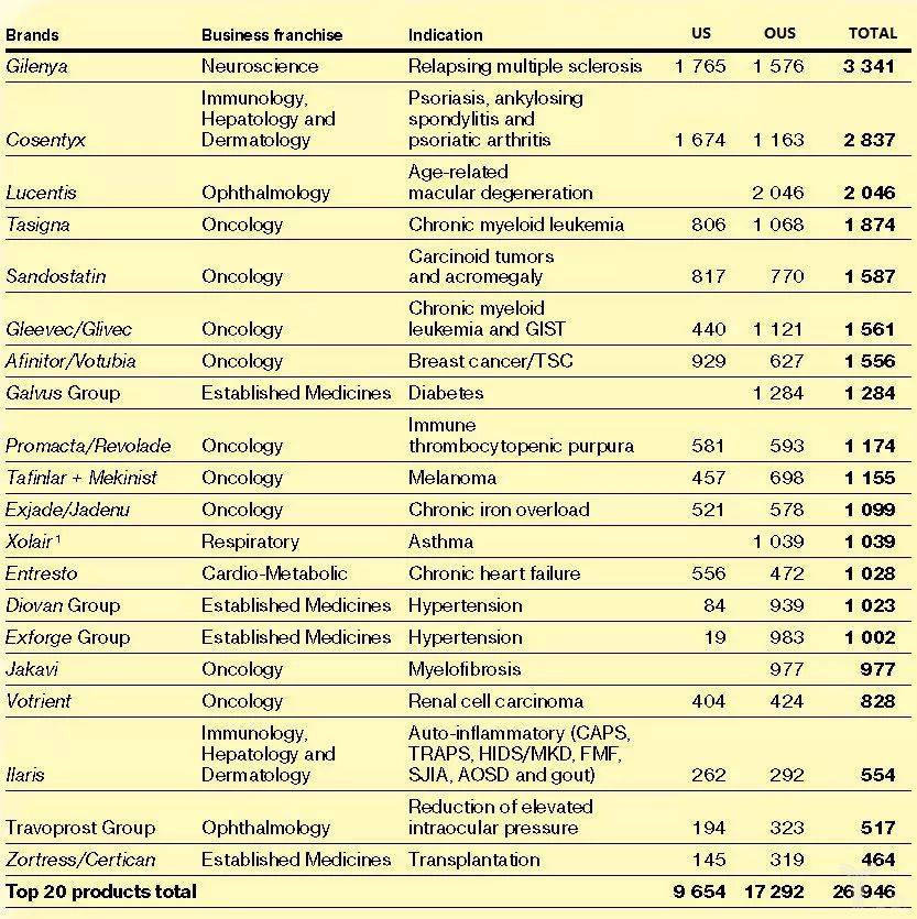 以下是诺华2018年销售额最大的20种产品,仅供参考: