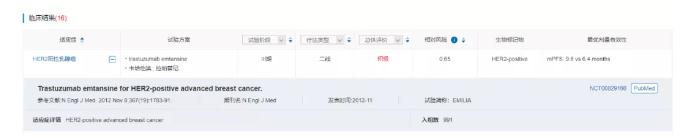 在复发转移性HER2阳性乳腺癌患者中开展的EMILIA研究结果显示,曲妥珠单抗 vs 拉帕替尼+卡培他滨组合显示出了中位无进展生存期方面的优势(9.6 vs 6.4个月)。