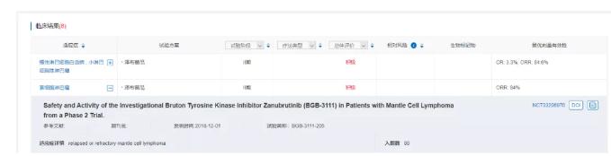 在针对套细胞淋巴瘤的II期临床试验(BGB-3111-206)中,ORR达到84%,其中CR为59%,PR为25%。针对慢性淋巴细胞白血病和小淋巴细胞性淋巴瘤的II期临床试验(BGB-3111-205)结果显示,主要终点ORR为84.6%,其中CR为3.3%,PR为59.3%,淋巴细胞增多的PR为22%。